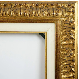 Cornice in legno laccato e dorato, XX secolo, misure ingombro cm 105x95, misure luce cm 88,5x78,5, (segni del tempo).