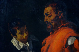 Diego Vélazquez (1599-1660) copia da, Acquaiolo di Siviglia, olio su tela, cm 100x70, firmato J.Wessell, entro cornice, (lievi difetti).