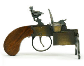 Dunhill Tinder Pistol, accendino a forma di pistola in legno e metallo, cm h 10x15, XX secolo.