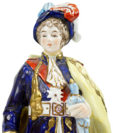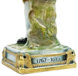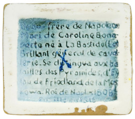 Gioacchino Murat 1767-1815, scultura in porcellana policroma, cm h 24, marchio e breve descrizione autobiografica sotto la base.