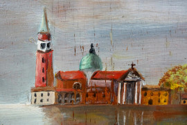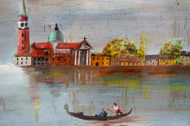 Gondole a Venezia, olio su tavola, cm 30x21, firmato, entro cornice.