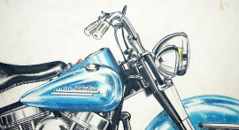 Harley Davidson, disegno a pastello su carta, cm 33x48, firmato, (difetti).