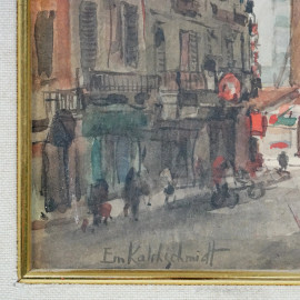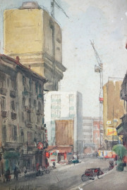 Il grattacielo di Via Velasca, acquarello su carta, cm 26x18, firmato Emilio Kalchschmidt, entro cornice.