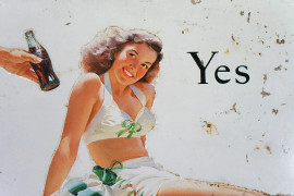 Kitty's Bath e Yes Coca Cola, due manifesti pubblicitari su latta, misure max cm 45x32, XX secolo, (difetti).