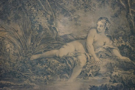 La Baigneuse Surprise, incisione, cm 35,5x46, da François Boucher (1703 - 1770), incisore Jean Daulle (1703-1763), entro antica cornice, (difetti)
