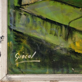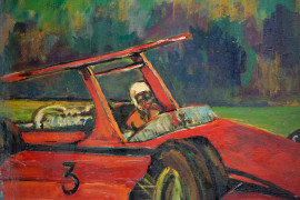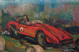 La corsa, olio su tela, cm 80,5x150, firmato, entro cornice.