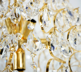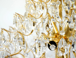 Lampadario in cristallo di Boemia, XX secolo, montatura in metallo dorato, cm h 50
