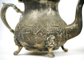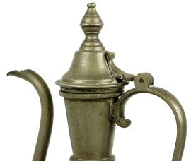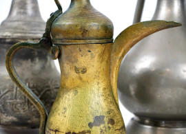 Lotto composto da cinque teiere in materiali diversi, cm h 34, XX secolo, (difetti).
