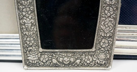 Lotto composto da dieci cornici portafotografie in argento, metallo argentato e legno, misure max cm 24,5x19,5, (difetti)