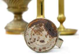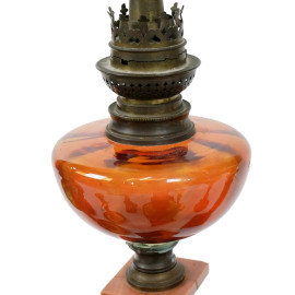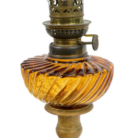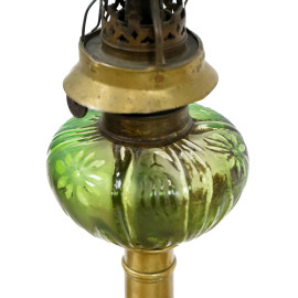 Lotto composto da otto lampade ad olio e due portacandele, materiali ed epoche diverse, alt. max cm 49, (difetti).
