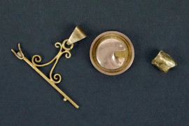 Lotto composto da tre piccoli oggetti in oro 18 KT, misure max cm 2,5x4, peso gr.6,1