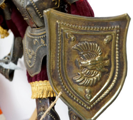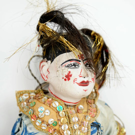 Lotto composto da un pupo siciliano e due marionette in legno intagliato e dipinto con abiti della tradizione popolare, lunghezza max cm 45, (difetti).