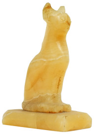 Lotto composto da un vasetto, uno svuotatasche ed una scultura a forma di gatto egiziano in onice, misure max cm h 13,5, (difetti)