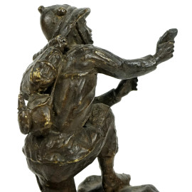 Lotto di due sculture in bronzo raffiguranti soldato e fabbro, alt.max cm 18, XX secolo, (difetti, parti mancanti).