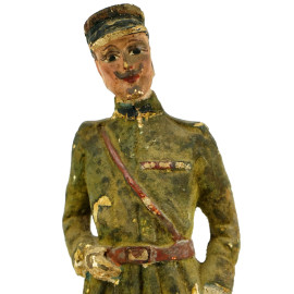 Lotto di quattro sculture in gesso, resina e legno raffiguranti gentiluomini, scugnizzo ed ufficiale, alt.max cm 27,5, XX secolo, (difetti e restauri).