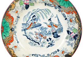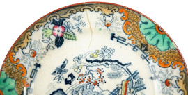 Lotto di tre piattini in maiolica inglese a decoro di cineserie, diam.cm 17, fine XIX - inizi XX secolo.