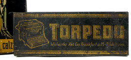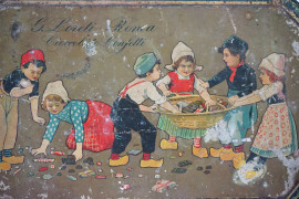 Lotto di tre scatole in latta, misure max cm 7,5x22x16, prima metà XX secolo, (difetti).