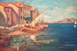 Martigues, olio su carta applicata su cartone, cm 21,5x27, firmato, entro cornice