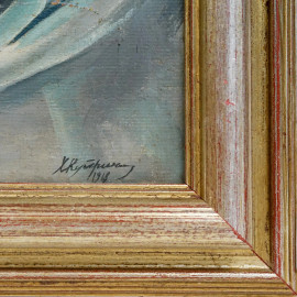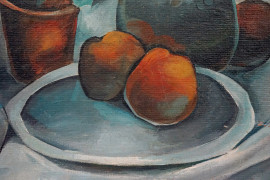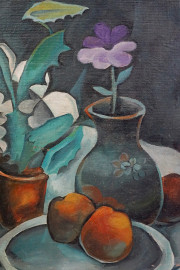 Natura morta, olio su cartone, cm 30,5x40,5, firmato e datato, entro cornice