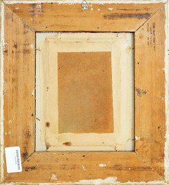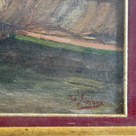 Paesaggio con pescatore, olio su tela, cm 27x21,5, firmato, entro cornice.