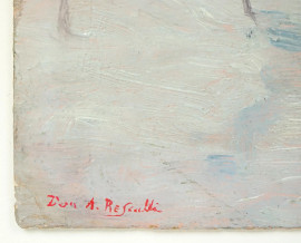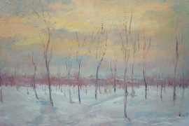 Paesaggio invernale, olio su cartone, cm 25x35, firmato entro cornice