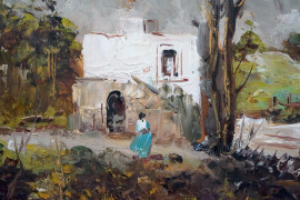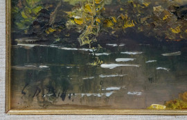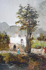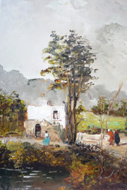 Paesaggio, olio su compensato, cm 40x30, firmato G.Pizzirani, entro corice.