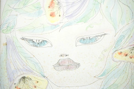 Ritratto di donna, stampa acquerellata a mano, cm 70x50, entro cornice.