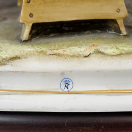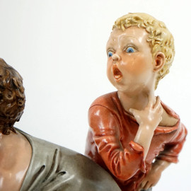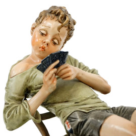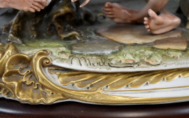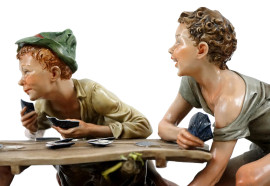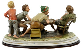 Partita a carte, gruppo in porcellana policroma Capodimonte, cm h 31x55,5x34,5, firmato Merli, (lievi difetti).
