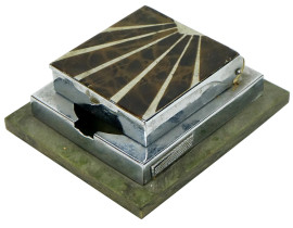Portasigarette déco in metallo con posacenere interno, cm 6x12x14, (segni del tempo).