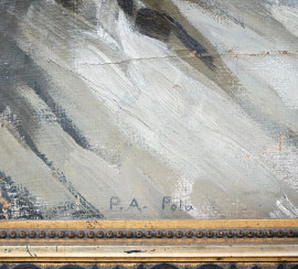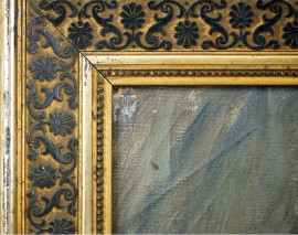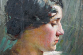 Profilo di donna, olio su tela riportata su masonite, cm 46x36, firmato, entro cornice, (difetti).
