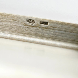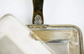 Raccogli briciole in argento, con manico in legno, metà XX secolo, cm 5x22x15, (difetti)