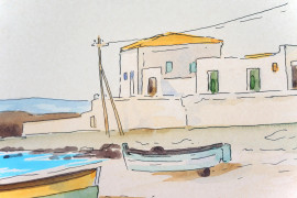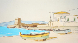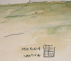 Scorcio di costa, stampa acquarellata a mano, cm 17x70, entro cornice