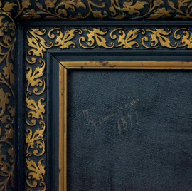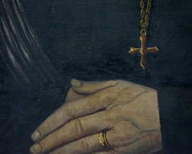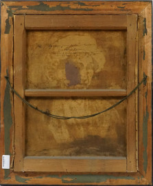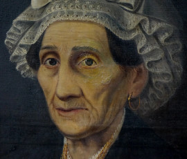 Ritratto di anziana, olio su tela, cm 66x53, firmato in alto a sinistra con dedica a tergo, entro cornice.