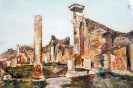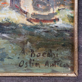 Rovine di Ostia antica, olio su masonite, cm 25x35, firmato, entro cornice.