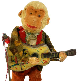 Scimmia rock 'n roll, giocattolo giapponese, cm h 30, metà XX secolo, (difetti).