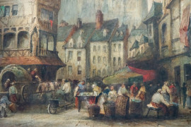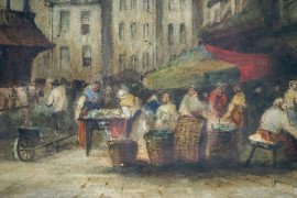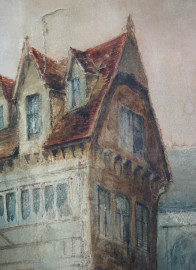 Scorcio con Notre Dame, acquarello su carta applicata su tela, cm 76,5x54,5, firmato Charles P.Pitt, entro cornice, (difetti)