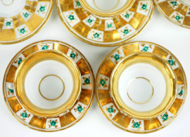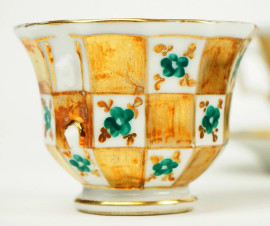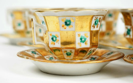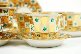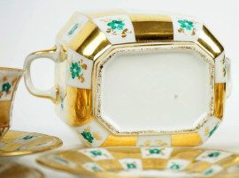 Servizio da caffè in porcellana con decori dorati e fiori verdi, XIX secolo