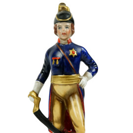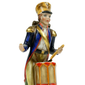 Soldato e suonatore di tamburo, due sculture in porcellana policroma, cm h 18, marcate Bavaria, prima metà XX secolo, (difetti).