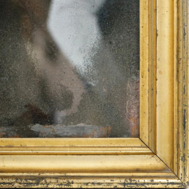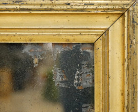 Specchiera di linea rettangolare in legno dorato, inizi XX secolo, misure ingombro cm 55x45,5, misure luce cm 44,5x35, (difetti).