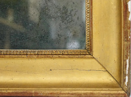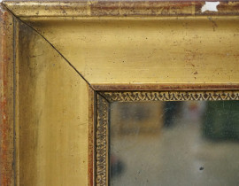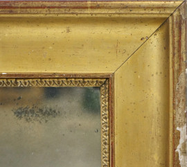Specchiera di linea rettangolare in legno dorato, XX secolo, misure ingombro cm 53x49,5, misure luce cm 37x33, (difetti).