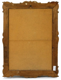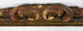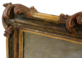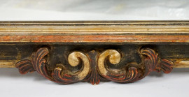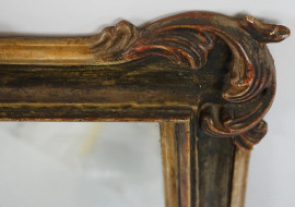 Specchiera di linea sagomata in legno intagliato e dorato, XX secolo, ingombro cm 93x68, (difetti).