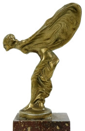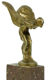 The Spirit of Ecstasy, scultura in metallo dorato, cm h 10, base in marmo.