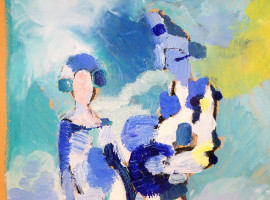 Figure, olio su cartone, cm 50x70, entro cornice.