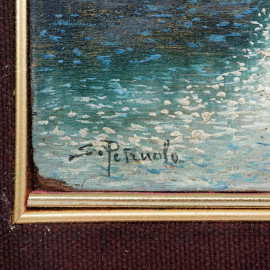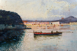 Veduta del Golfo di Napoli, olio su tavola, cm 11x17, firmato, entro cornice, (lievi difetti).