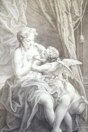 Venere e Cupido, stampa da Carlo Antonio Porporati (1741-1816), cm 53,5x40,5, XX secolo, entro cornice.