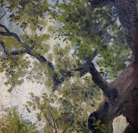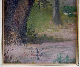 Villa Borghese, olio su tela riportata su tavola, cm 46x15, firmato, entro cornice