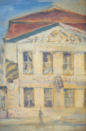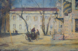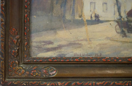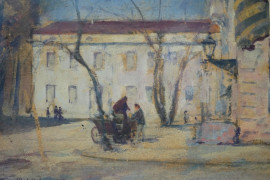 Zum Einsiedler, tempera ed acquarello su cartone, cm 41x51, firmato, entro cornice.
