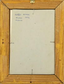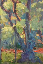 Alberi, olio su cartone, cm 11x7, firmato a tergo, entro cornice.