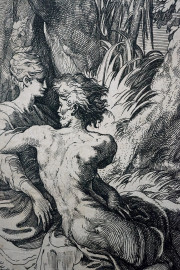 Amanti, antica incisione da Parmigianino (1503-154), cm 15x10,5