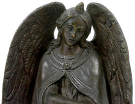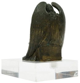 Angelo seduto, scultura in bronzo, cm h 11, base in plexiglass, XX secolo, (difetti)